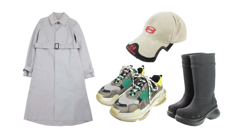 現在はレディースウェア、メンズウェア、バッグ、シューズ、アクセサリー、フレグランスなど幅広いアイテムを展開しています。「City(シティ)」、「Neo Classic(ネオクラシック)」、「Hourglass(アワーグラス)」などのバッグ、「Triple S(トリプルS)」、「Track(トラック)」、「Speed Trainer(スピードトレーナー)」といったスニーカーをはじめ、ロゴアイテムやオーバーサイズアウター、GucciやAdidas、Crocsとのコラボレーションラインなど幅広いアイテムが世界中で支持されています。