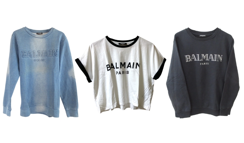 BALMAIN(バルマン) のロゴが施されたTシャツやスウェット、PBモノグラム柄のバッグは高価買取が期待できます。