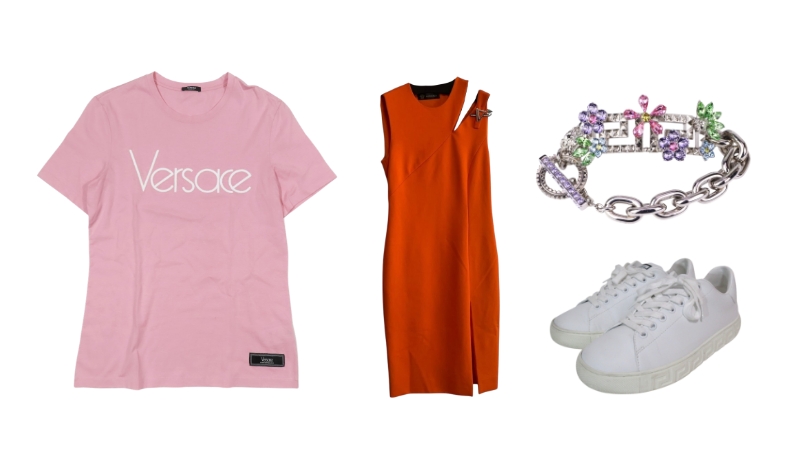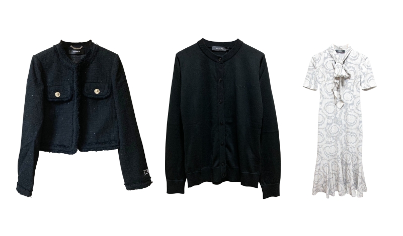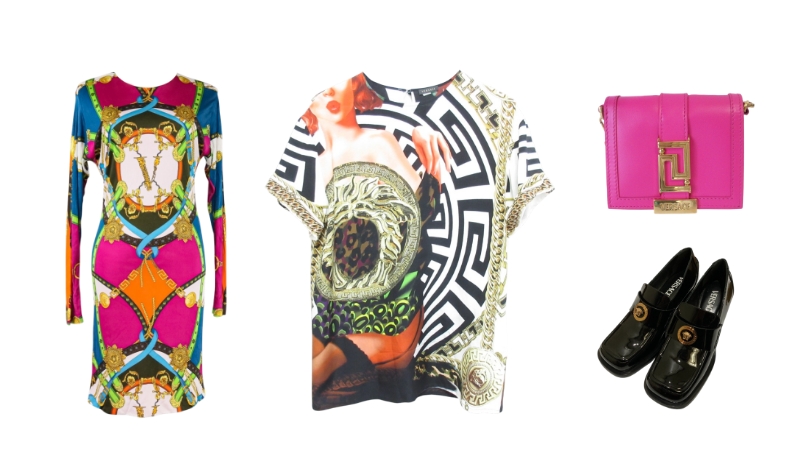 ブランドの大きな特徴は、バロック様式の装飾や大胆なプリント柄、そして身体のラインを美しく強調するカッティングで、パーティーシーンから都会的なストリートまで圧倒的な存在感を放つ点です。特に、ブランドの象徴である神話の女神をモチーフにした「メドゥーサ」や、幾何学的な連続模様が印象的な「グレカ柄」を施したレザージャケット、バッグなどのアイテムは長年にわたって世界中のファッション愛好家に愛されています。